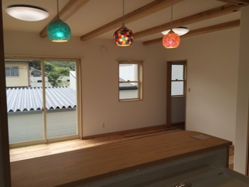 LDKの天井は梁をみせて、床は無垢フロアーです。