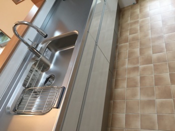 キッチンは、床(タイル風)と水栓にこだわりました。