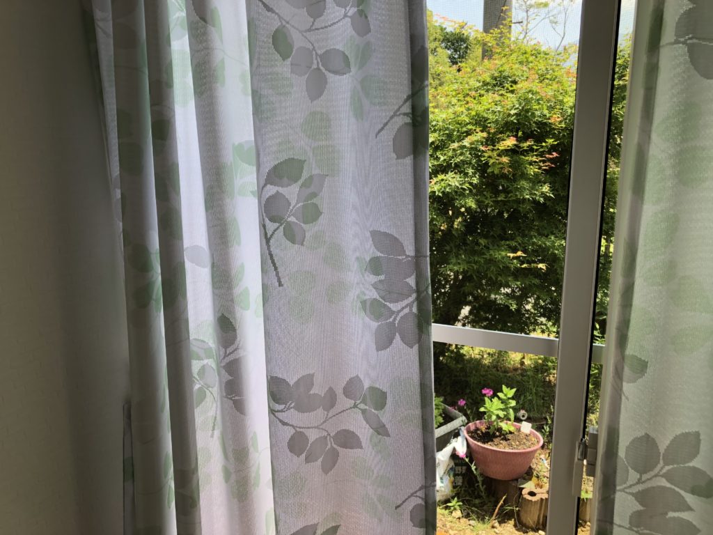 以前のブログで「カーテン選び」の記事を載せましたが、我が家の増築のカーテンは、これからの季節に合う涼しげなカーテンにしました。ネットで検索したお店ですが、部屋に合ったカーテンの種類が多く、見るだけでも楽しくて