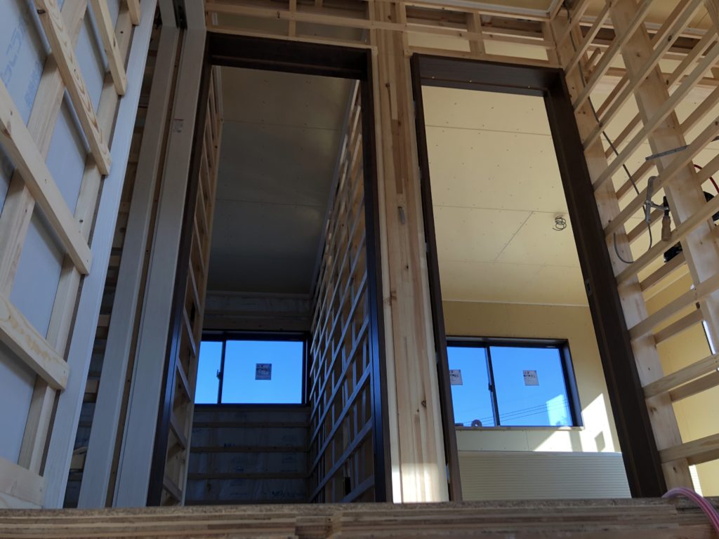 2階も見てくださいね。と大工さんの声で慎重に階段を上りました。