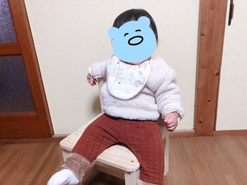 そして、先日の見学会(恵那市)では ハガキを持参するともらえる「子供用チェア」も先着に間に合い 大工さん手作りの椅子をもらってきました。 座り心地が良いのか、ずっとにこにこ顔で座っていたとの事でした。