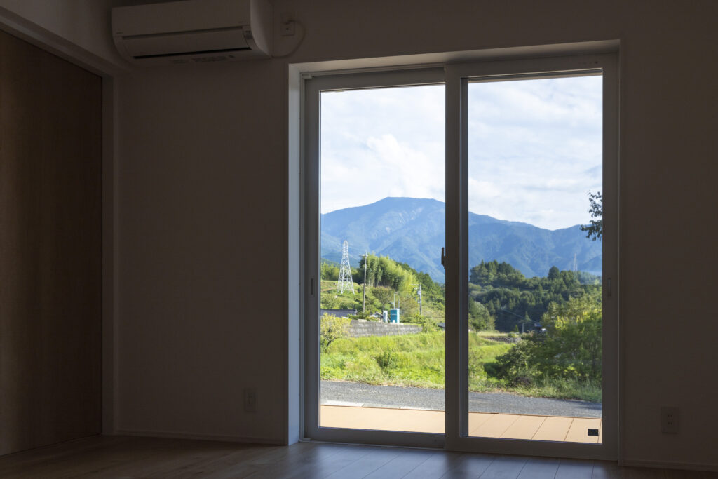 山の緑を満喫できるバルコニーやウッドデッキなど