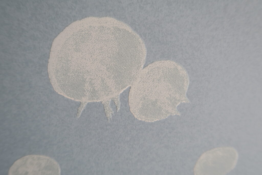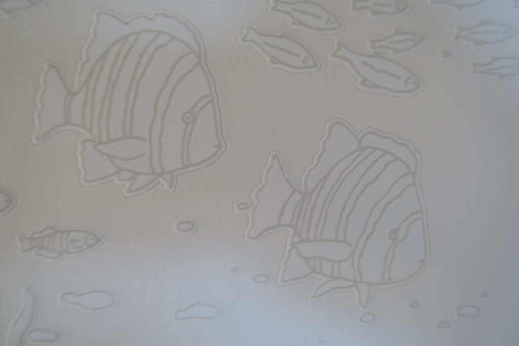息子さんのお部屋は、なんと蓄光タイプ!お魚がいっぱいで、まるで水族館にいるようなクロスです。指をさしながら、お魚の名前を一つひとつ言っていて、よく覚えているなと感心しました。