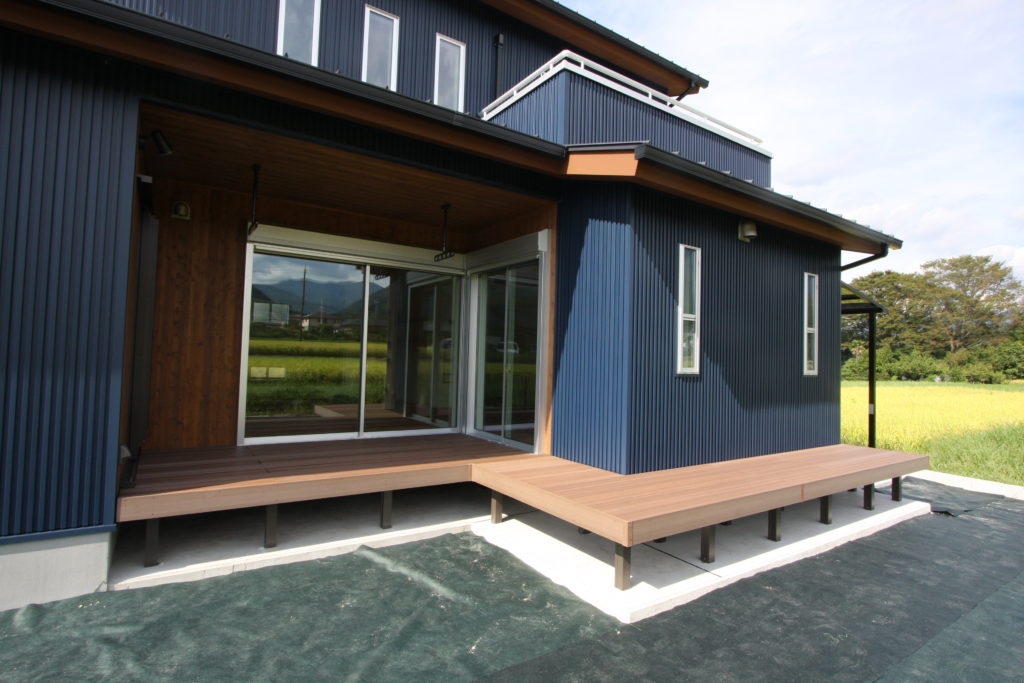ウッドデッキを付けたいのは、お施主様の初めからの希望でしたので、壁を奥に引っ込めたり、あらかじめコンクリートを打っておくなどして計画しました。