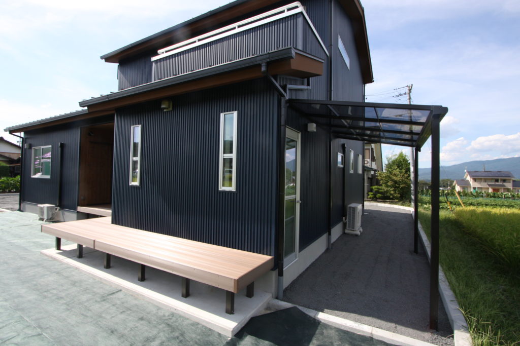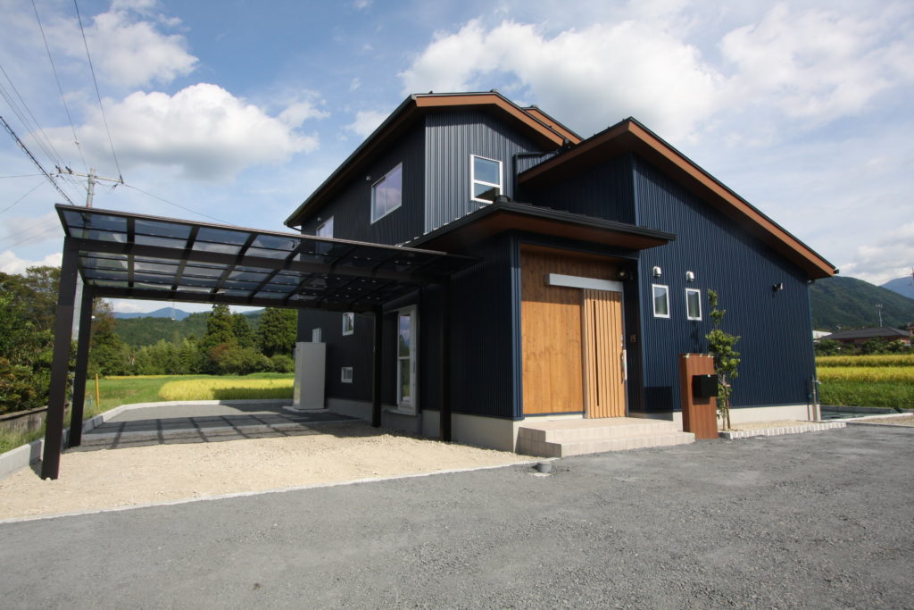 家を建てるうえで大事なのは、駐車スペースです。今回は建物裏に設置してあります。北側にある隣人の家の日当たりが悪くならないようにとの事。土地が広いからできることですね。
