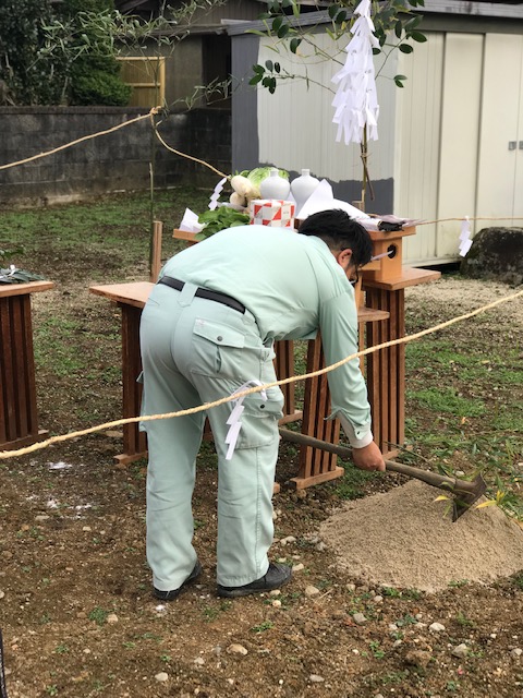 先日、営業の加藤さんに同行しS様の地鎮祭のお手伝いに行ってきました。