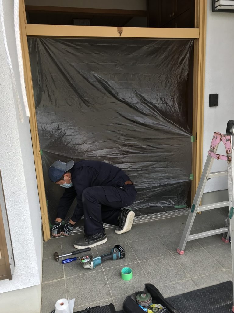 2020/4/16 お客様の家家づくり施工現場お役立ち情報 投稿者:STAFF1 本日はリノベーション現場へ こんにちは中津川市にある建設会社、日建建設の現場監督の渡邊です。 今日はOB様宅の玄関引き戸の取替工事へ行ってきました 職人さんが既存のレールを取り外している状況です。 今回の商品はリクシルのリシェント 玄関引き戸の枠はそのままで、扉を変えれる商品です。 レール、欄間は取り外して枠もカバーで覆います。 枠を外すと外壁、内壁まで外す必要がある為、コストパフォーマンスに優れています♪