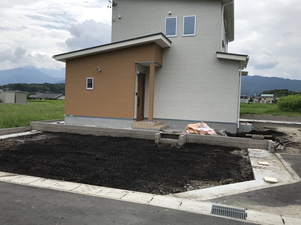 2021/7/12 お客様の家施工現場 投稿者:STAFF1 外構工事中 こんにちは中津川市にある建設会社、日建建設の現場監督、渡邊です。 ようやく梅雨明け間近になり、延期していた外構工事に入りました。 駐車スペースをアスファルト舗装で仕上げる予定なので 本日は舗装屋さん、水道屋さんと高さの打ち合わせをして 水道メーター、雨水桝などの高さを打ち合わせしてきました。 この現場は今月末の予約見学会現場となっております。 見学会までになんとか仕上がりそうです♪