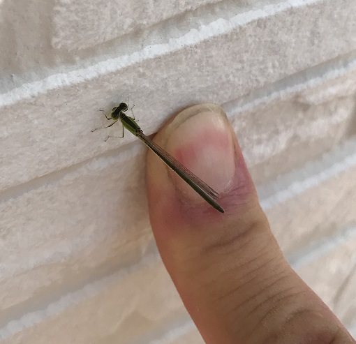 2021/8/9 日建の日常 投稿者:STAFF1 夏の虫 こんにちは中津川市にある建設会社、日建建設の現場監督、渡邊です。 今日は坂本のお客様の外壁をチェックしていた所 壁に何か刺さっている? と思い近づいたら小さなトンボでした!! 昆虫にそこそこ詳しいと思っていたのですが こんなに小さな(全長2cm程度)トンボは初めてです。 コフキヒメイトトンボと思われますが トンボは色の個体差が激しいので、あっているのかどうか分かりません。 目を凝らせば身近に色んな生き物はいるので この夏休み、お子様とご一緒に昆虫採集を是非♪