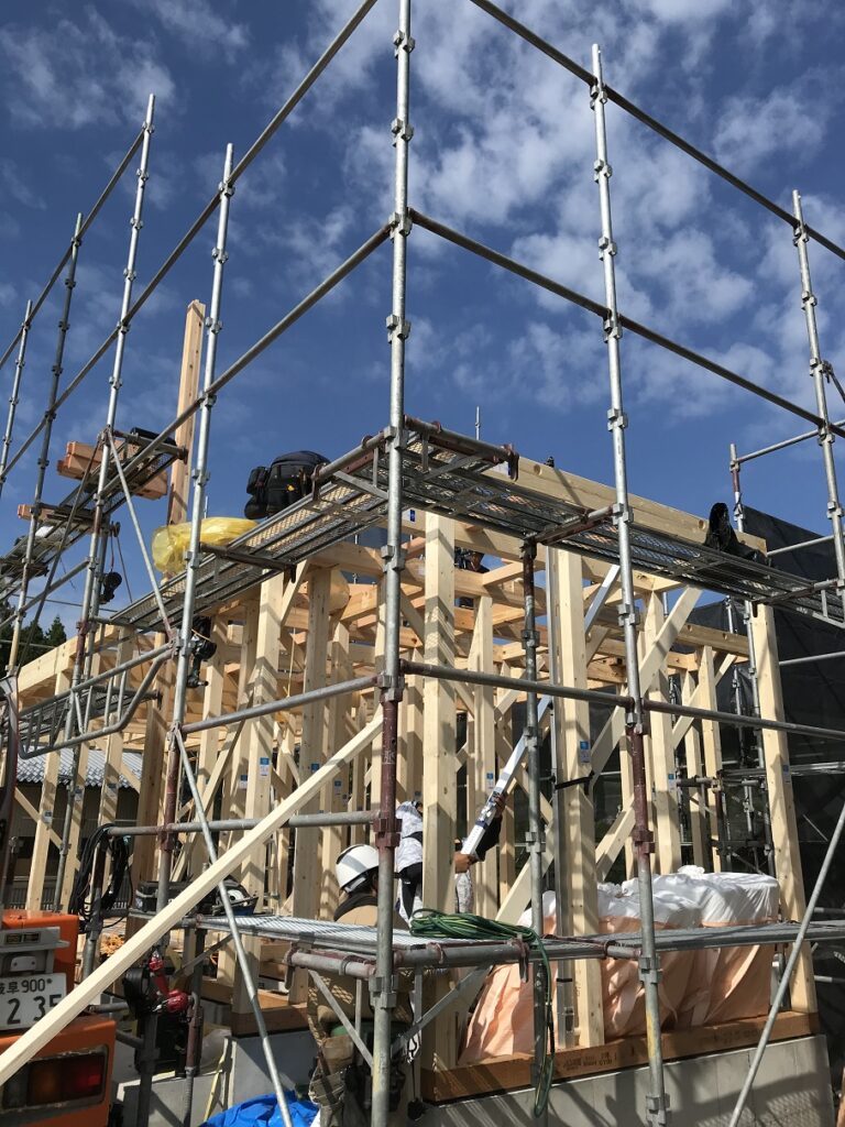 2021/8/30 お知らせ 投稿者:STAFF1 上棟日 こんにちは中津川市にある建設会社、日建建設の現場監督、渡邊です。 本日は恵那市で上棟をしています。 長い間、雨が続いていましたが、快晴の中、建て方が出来てほっとしています。 上棟が済んでしまえば、雨の影響は少ないのですが それまでの造成・基礎工事、土台敷・上棟までは 天気に大きく影響されてしまいます。 天気が落ち着いてくると、仕事の流れも読めて 本当に助かります✨