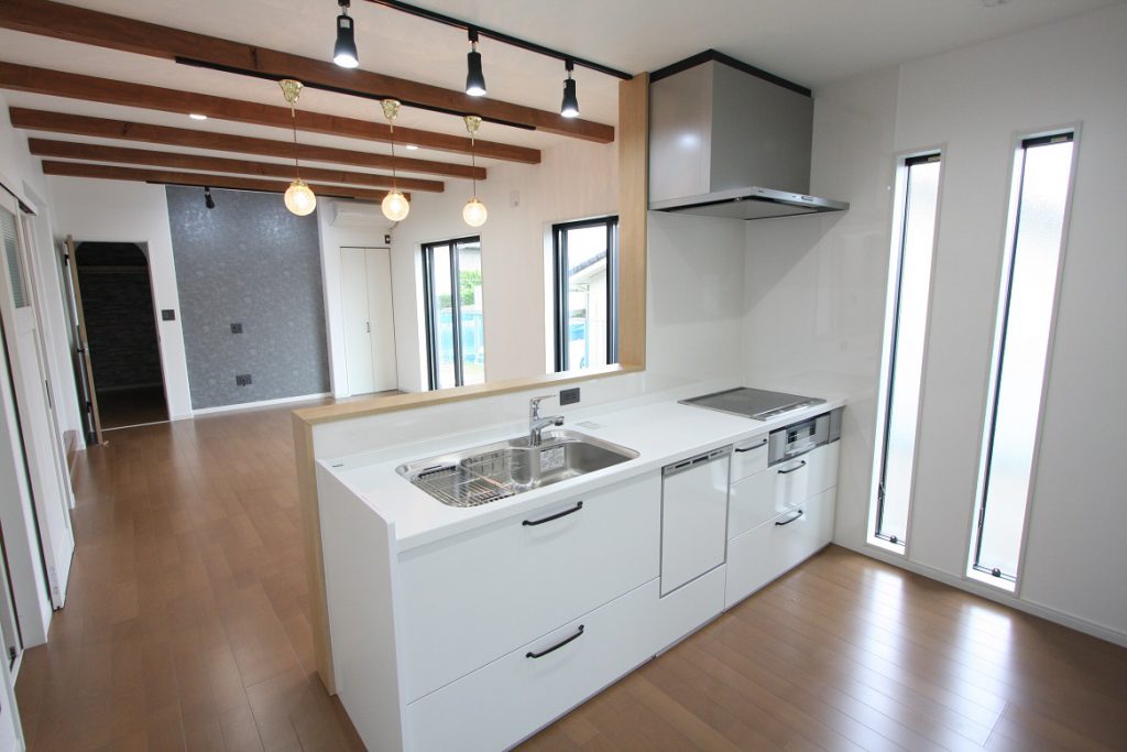 2019/8/22 お客様の家 投稿者:STAFF1 お引渡し 先日お引渡しを済ませた恵那市のお客様の家です。 天井に構造用の梁を化粧で見せ、 TVを壁掛けする部分は少し壁に段差を付けています。 少ない色味でまとめているので素敵なリビングに仕上がりました♪