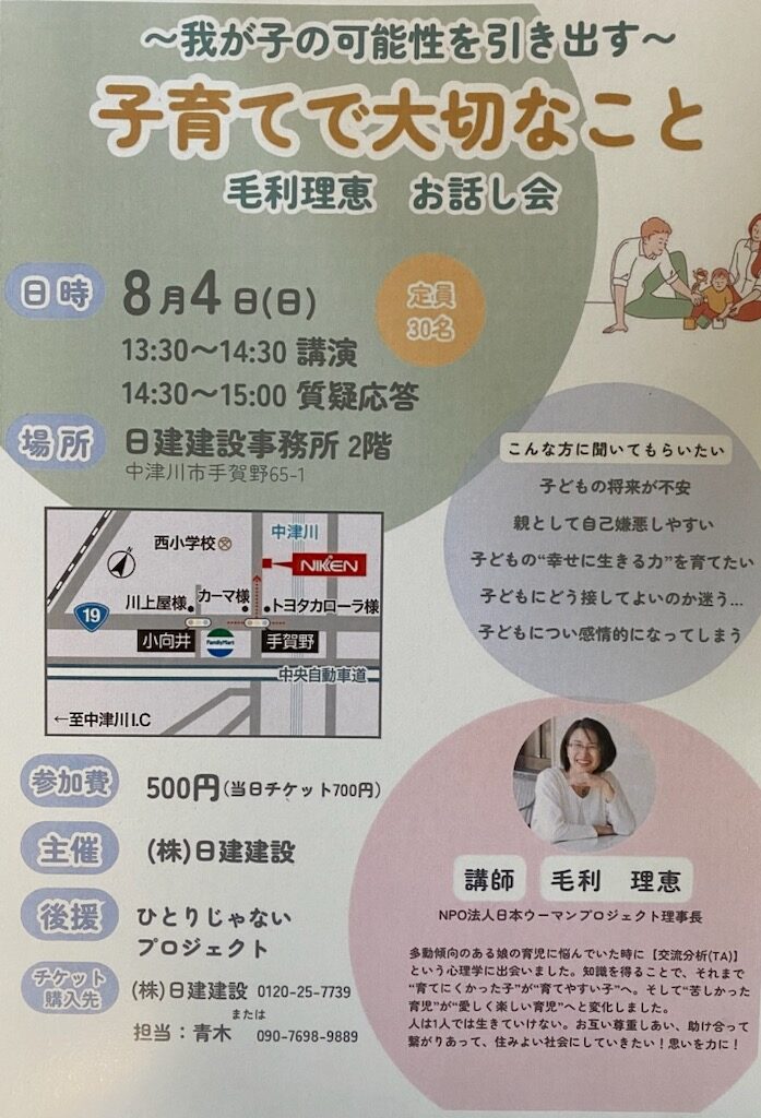 『~我が子の可能性を引き出す~ 子育てで大切なこと』というお話し会を行います。