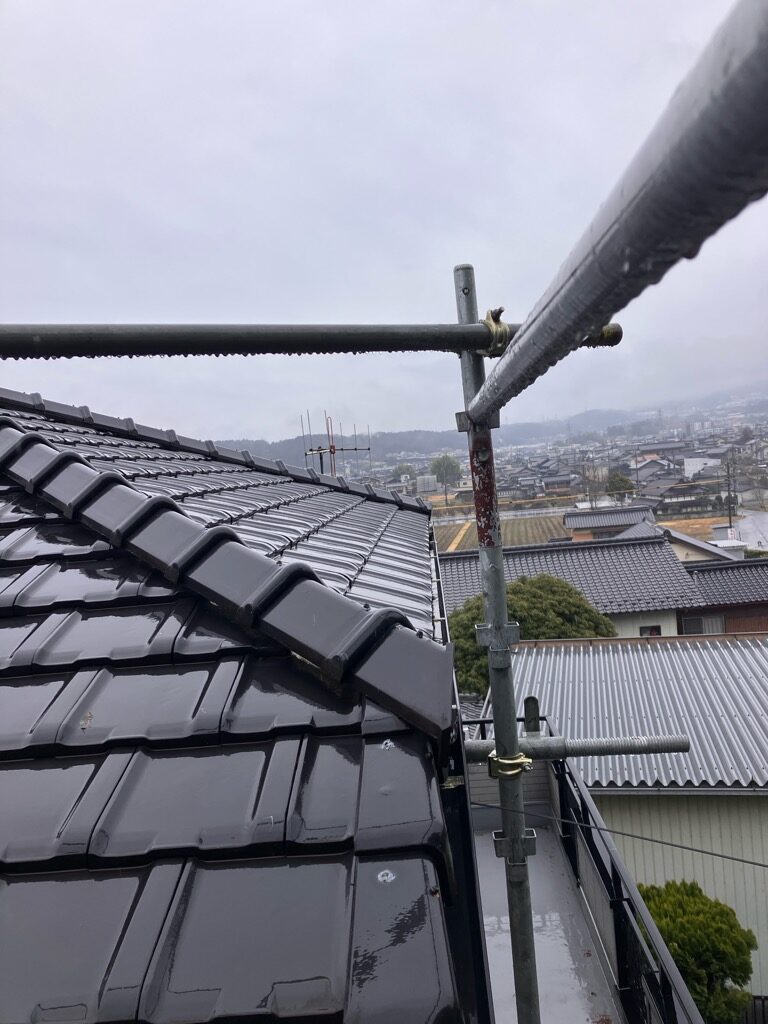 ・トップの写真は足場から見た屋根と景色