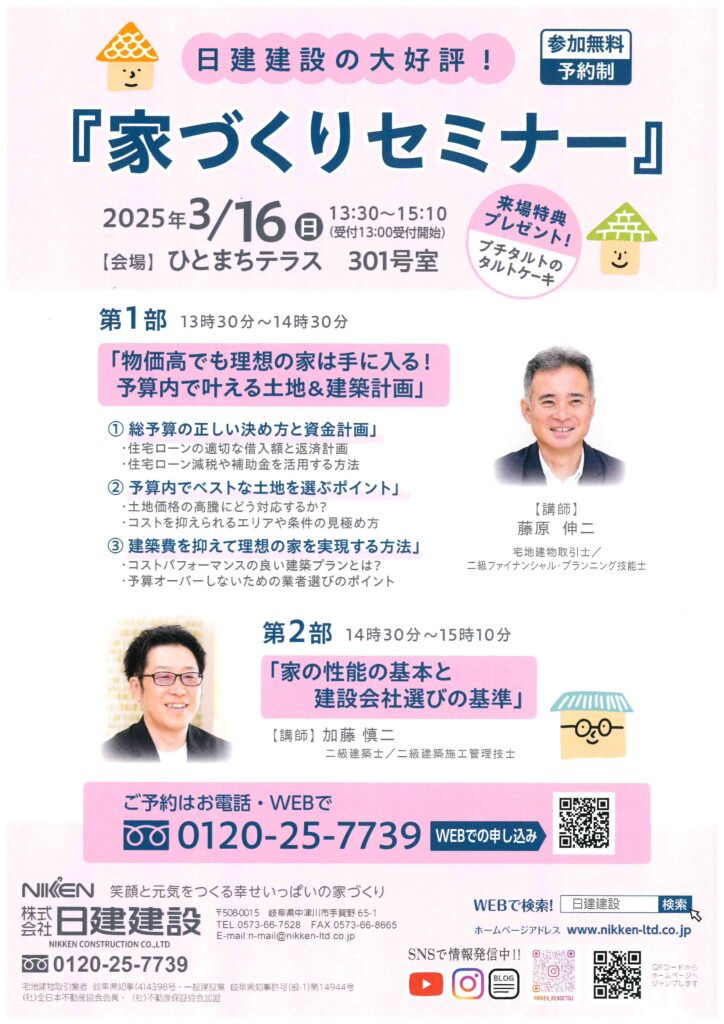 🌐 WEB予約 → 家づくりセミナー(予約制) | 岐阜県中津川市で注文住宅・工務店なら自由設計の日建建設へ