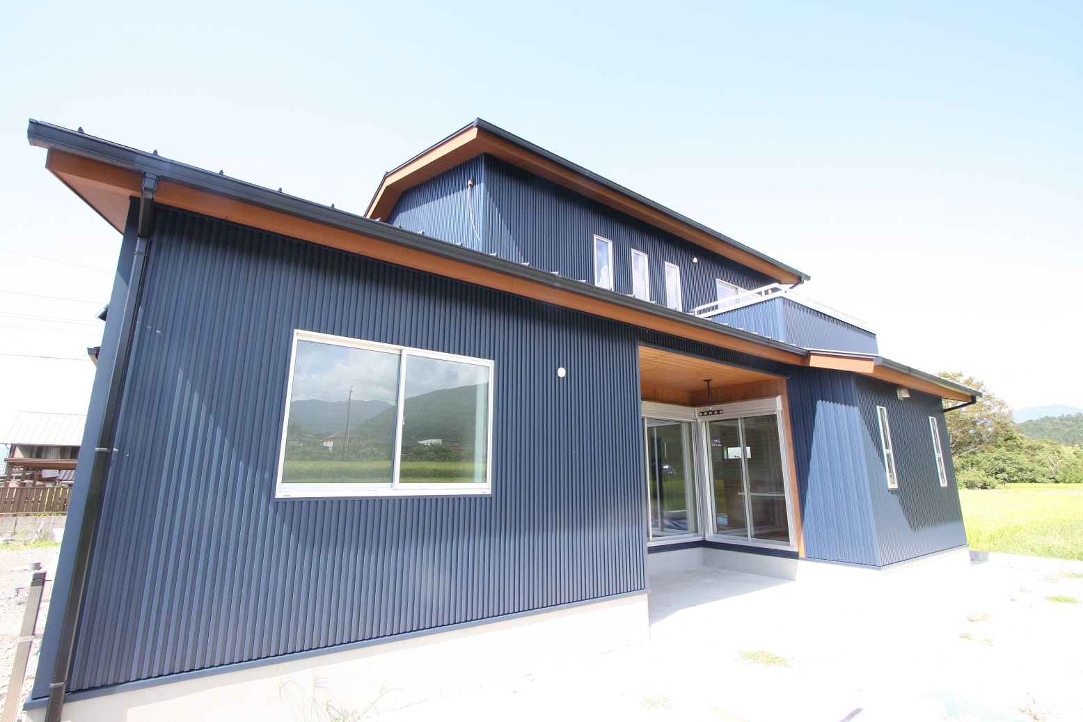 外観は、ガルバリウムと木を使いスタイリッシュにしています。
