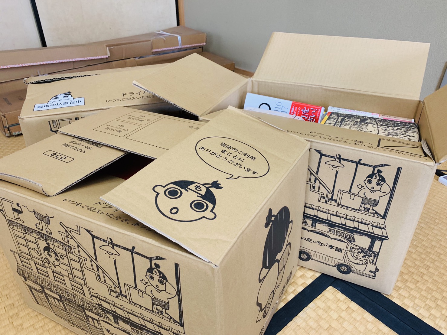 電話で段ボールをお願いすると、ガムテープも一緒にすぐに届き,詰め込み連絡すると宅配業者の方がすぐに集荷に来てくれます。後は査定がありますが、買取金額よりスピーディなのが嬉しく他と比較することなく頼んでいます。