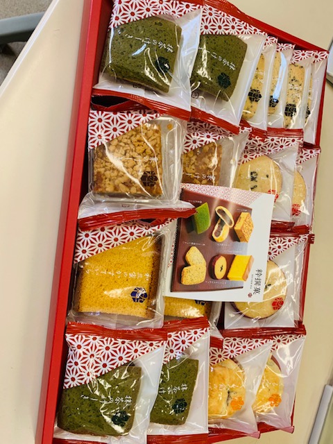 写真のお菓子はT様ご家族から頂いた内祝いです。