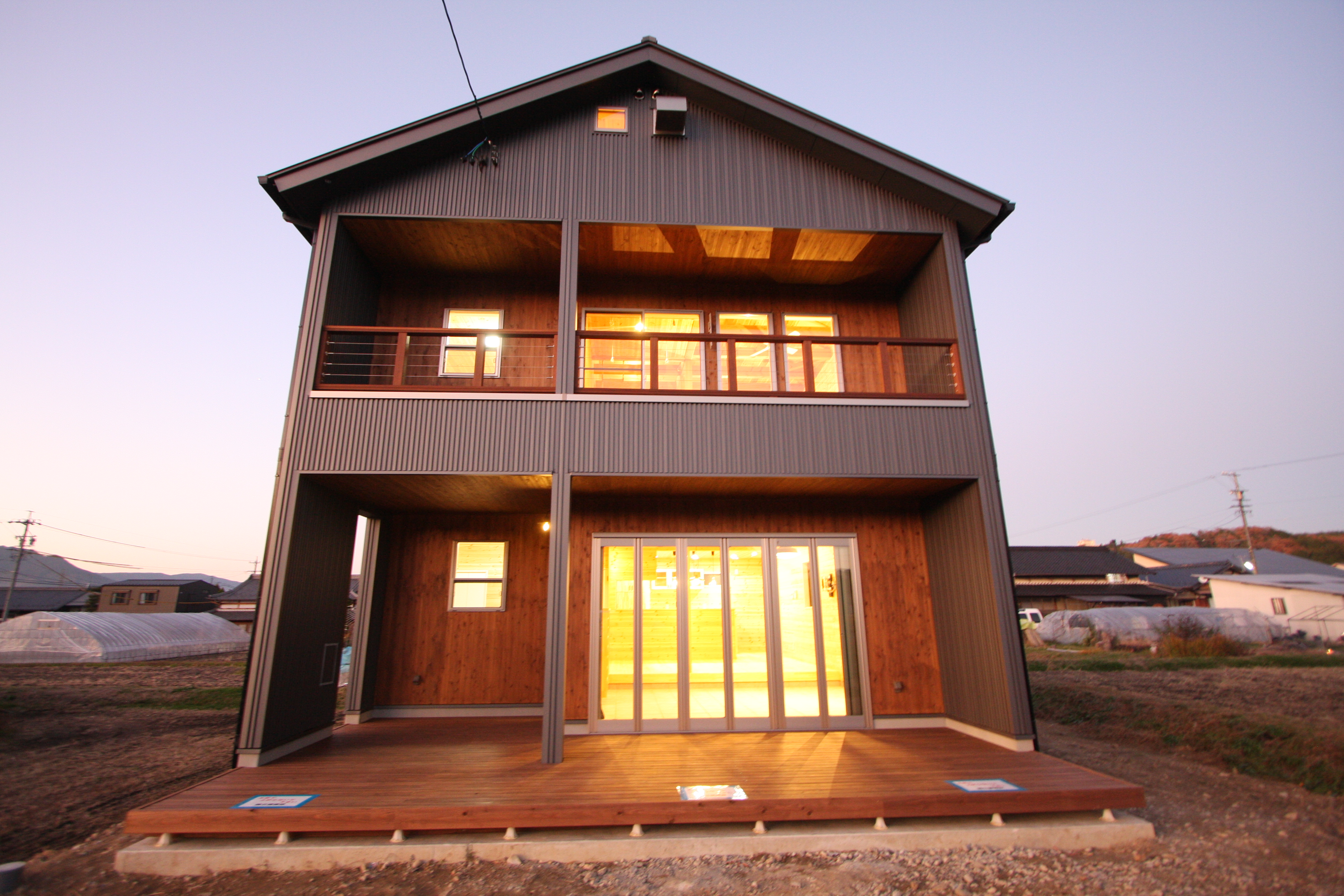 外観の正面は木を壁に貼り、ウッドデッキも造りました。