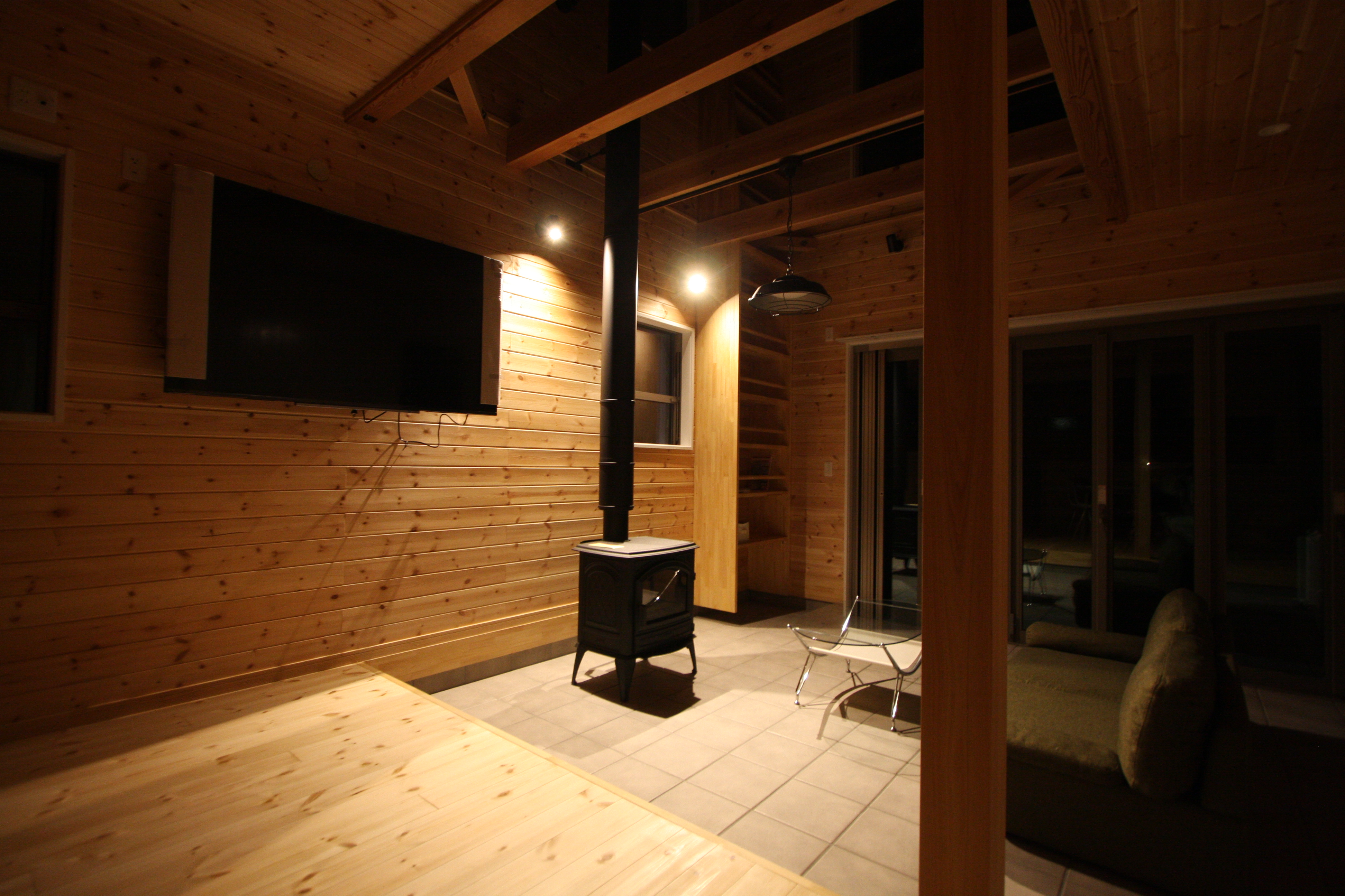 今回の見学会場は、木をたくさん使い、薪ストーブがあり、