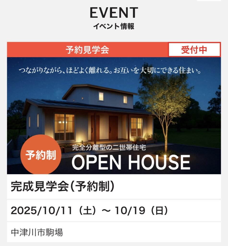 中津川市で二世帯住宅の完成見学会|家族のちょうどいい距離感を体感