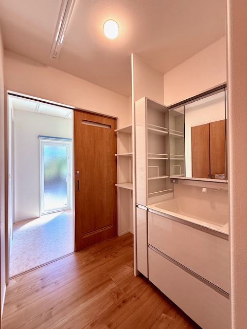 洗面所と脱衣所を別にし、収納も別にしてあります。広々としています。