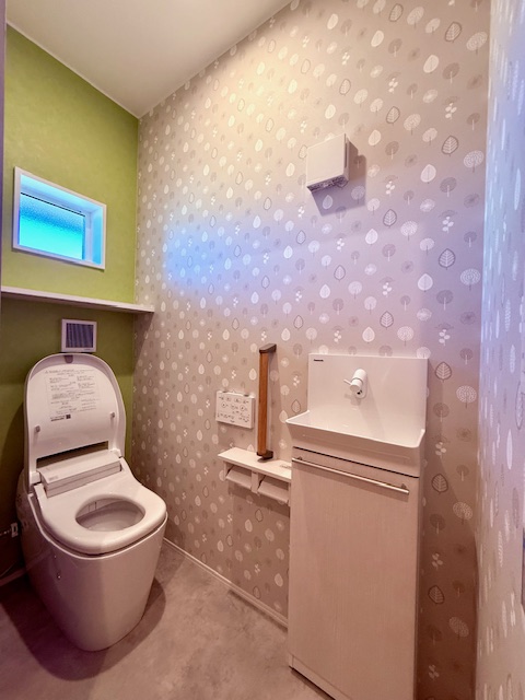 玄関ホール、トイレ、収納と動線に無駄がありません。トイレはタンク付き標準タイプ。