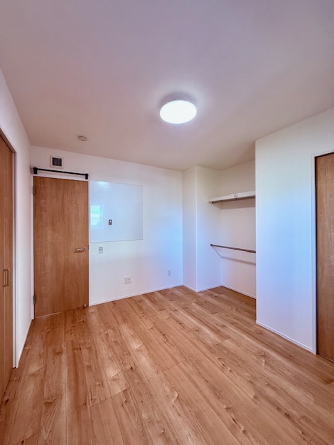 奥様の寝室は、クローゼット2ヶ所、ウォークインクローゼット、懸垂棒、マグネットボード付き。