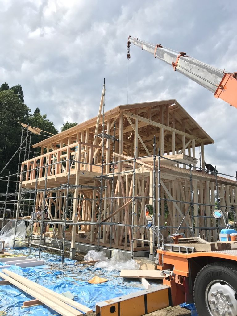 2020/7/30 お客様の家 投稿者:日建の家づくり 梅雨明けが近づいてきました♪ こんにちは中津川市にある建設会社、日建建設の現場監督、渡邊です。 ずーっと雨が降り続き、建て方や基礎工事が延期となっていましたが ようやく工事が進み始めました。 コンクリート自体は乾いているよりも濡れている方が 硬化には良かったりするのですが、打設時に水分量が多くなりすぎたり 均した後に土砂降りで表面をたたいてしまうと困るので 延期していました。 8月からは天気に工事が左右される事も少なくなるので 工程管理の組み直しが減るのでありがたいです。