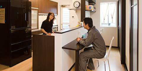 ご家族の理想をかなえる注文住宅だから、納得いくまでお付き合い致します。日建建設の家は、間取り変更も自由自在。だからずっと快適に住み続けられます。更に弊社の専門家のアドバイスにより、設計の自由度が高いだけではなく構造的な制約を少なく、空間の広さや機能性を充実させるプランもご提示することができます。しかも、点検や修理がしやすく、家族構成やライフスタイルの変化に合わせた間取り変更や増改築も容易。