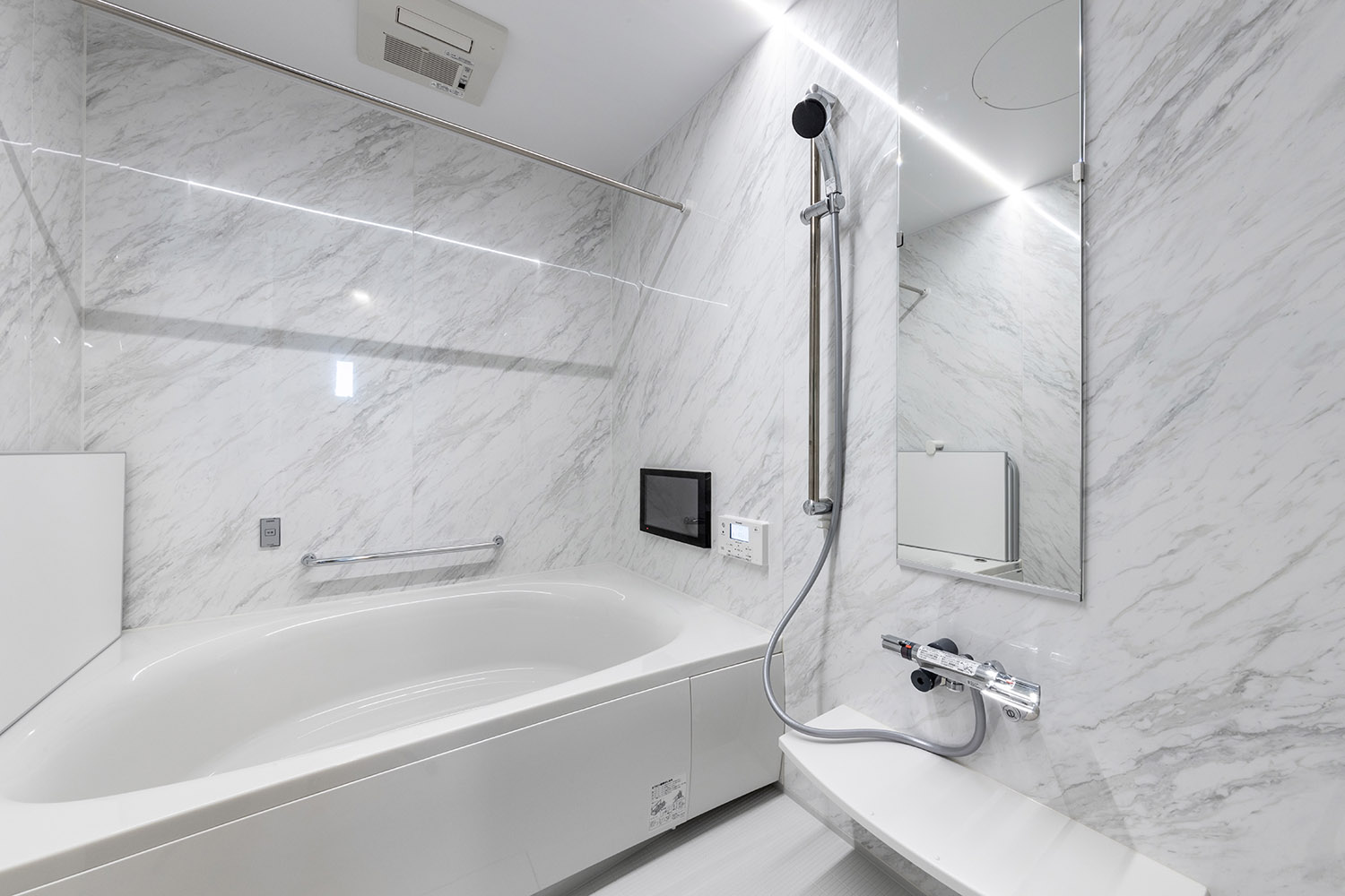 壁面に設けたオープン収納が便利な寝室。お気に入りの雑貨や小物を美しくディスプレイできます。
