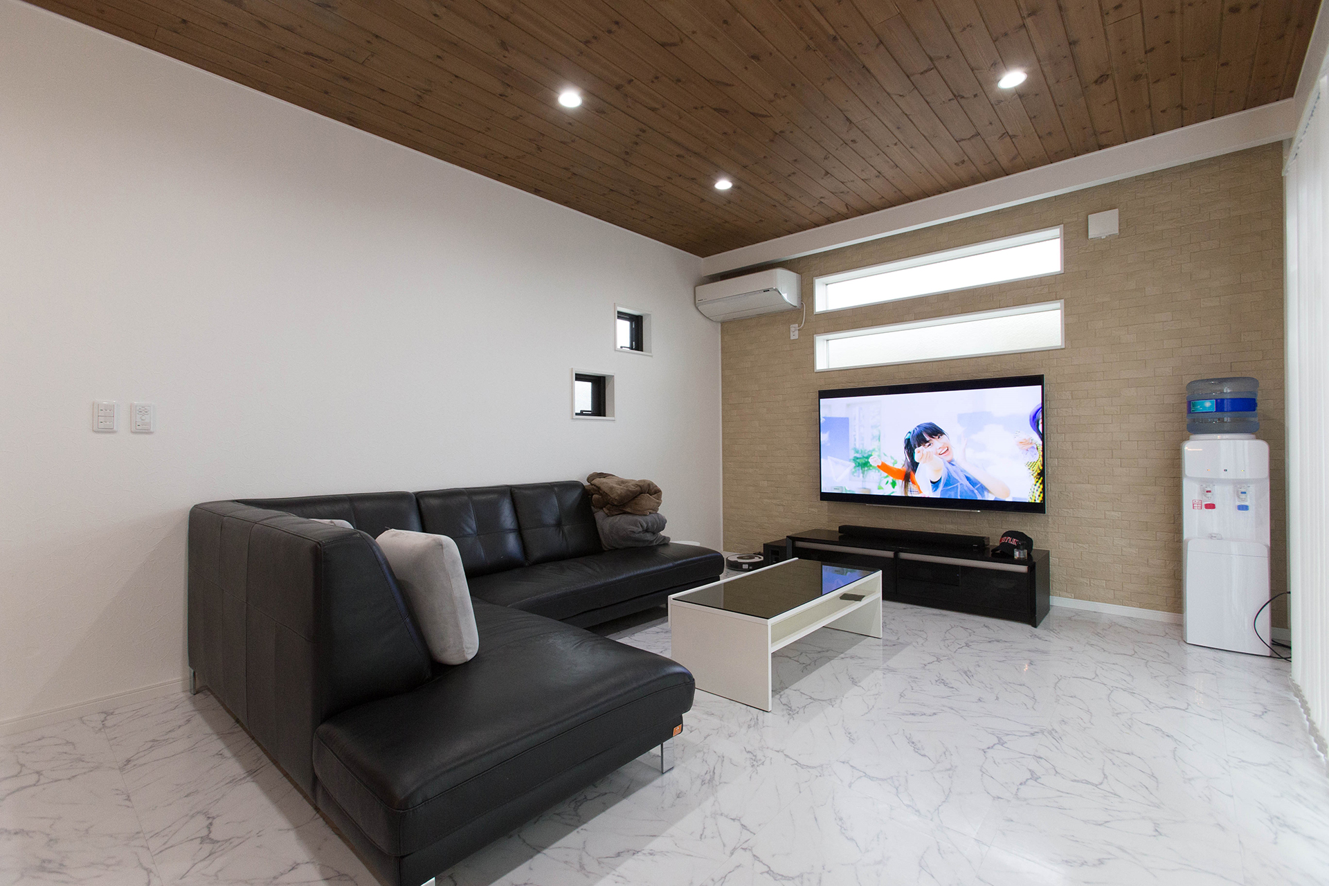 格子ガラスとタイルデッキが映えるオシャレなお家