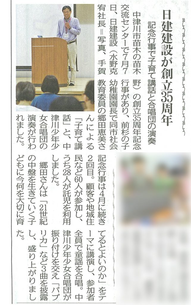 日建建設創設35周年記念 郷田恵美さんが子育て講話