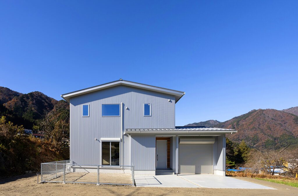 施工例:外壁はシルバーのガルバリウムでシンプルにカッコよく
