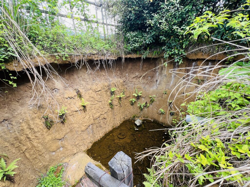 当時の写真を基に再現された池