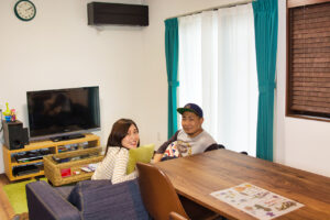 日建での土地探しを中心に、自分達も気に入った土地を求めて動きました。 結局、1年くらいかかってようやく土地を決定し、購入。 その間、担当の藤原さんが、色々な土地を提案してくれました。家づくりへの気持ちがさめてしまった時も、こまめに声をかけて下さった藤原さんには本当に感謝しています。途中で藤原さんに「100%納得のいく土地は無いですよ」と少し怒られました(笑) 仏の様な藤原さんの頭に角が生えた瞬間でした(笑)