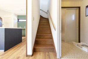 ・玄関入って2Fに行くのに、リビングを通らないといけない所は、家族が顔を合わせる空間として良いと思いました。
