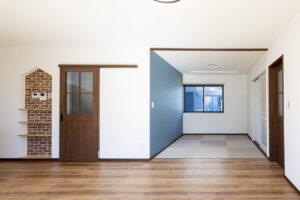 土地がようやく決まったので、次は家の間取り、色決めと進み、長かった家づくりが終わりました。建てている途中、こまかな追加オーダーをしても嫌な顔を見せず、協力的にしてもらった渡辺さんにも とても感謝しています。 今振り返ってみて、藤原さんが担当じゃなければ、建てていなかったと思います。藤原さん、いつか山奥の田舎で一緒に飲める事を楽しみにしています(笑)※山奥:(お施主様の奥様のお母様の実家と藤原の奥様の実家が同郷だそうです)