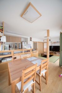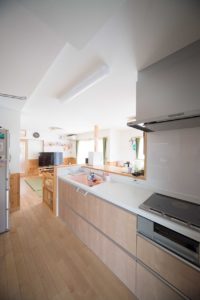 また奥様はキッチンがとってもお気に入りとの事。キッチンに立ちながら子供の様子が見え、楽しいそうです。また流し台が広く使い勝手が良いので助かってます。とおっしゃっていました。